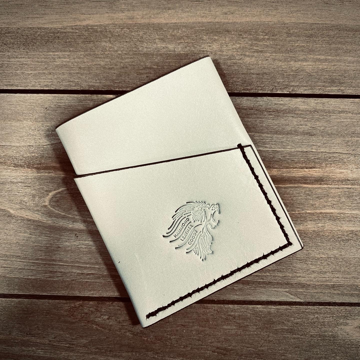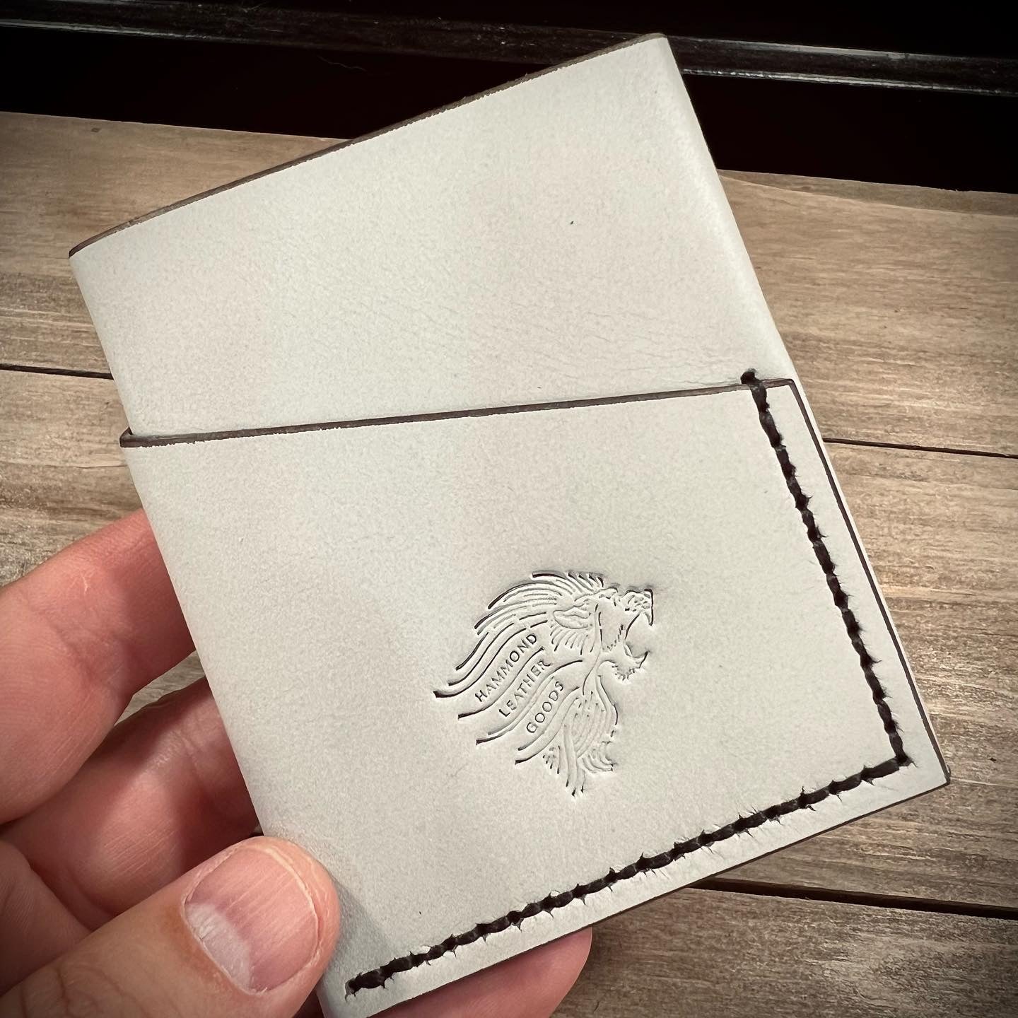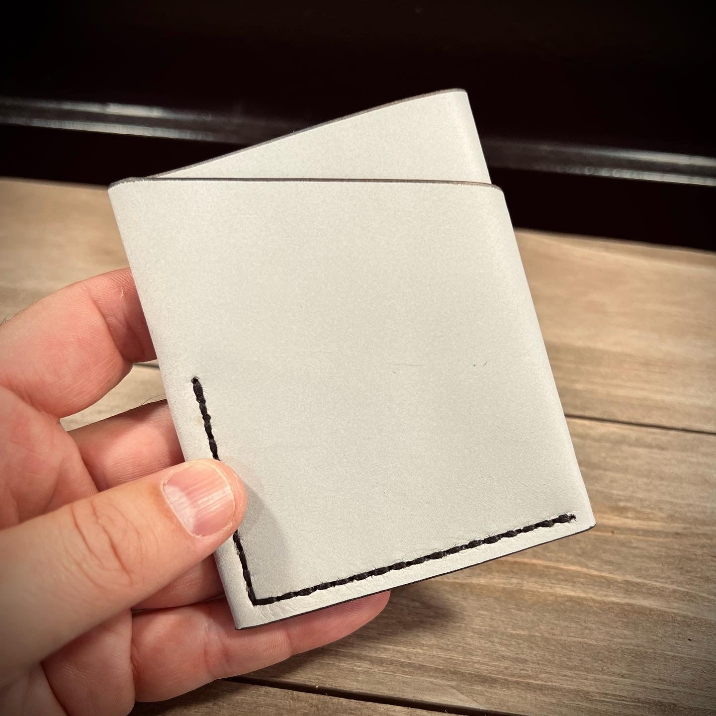 This one piece/ all in one wallet is made of beautiful gray Buttero Italian Leather, held together by a black thread double stitch. This hand made ine of a kind wallet, is a minimalist approach to your every day carry.