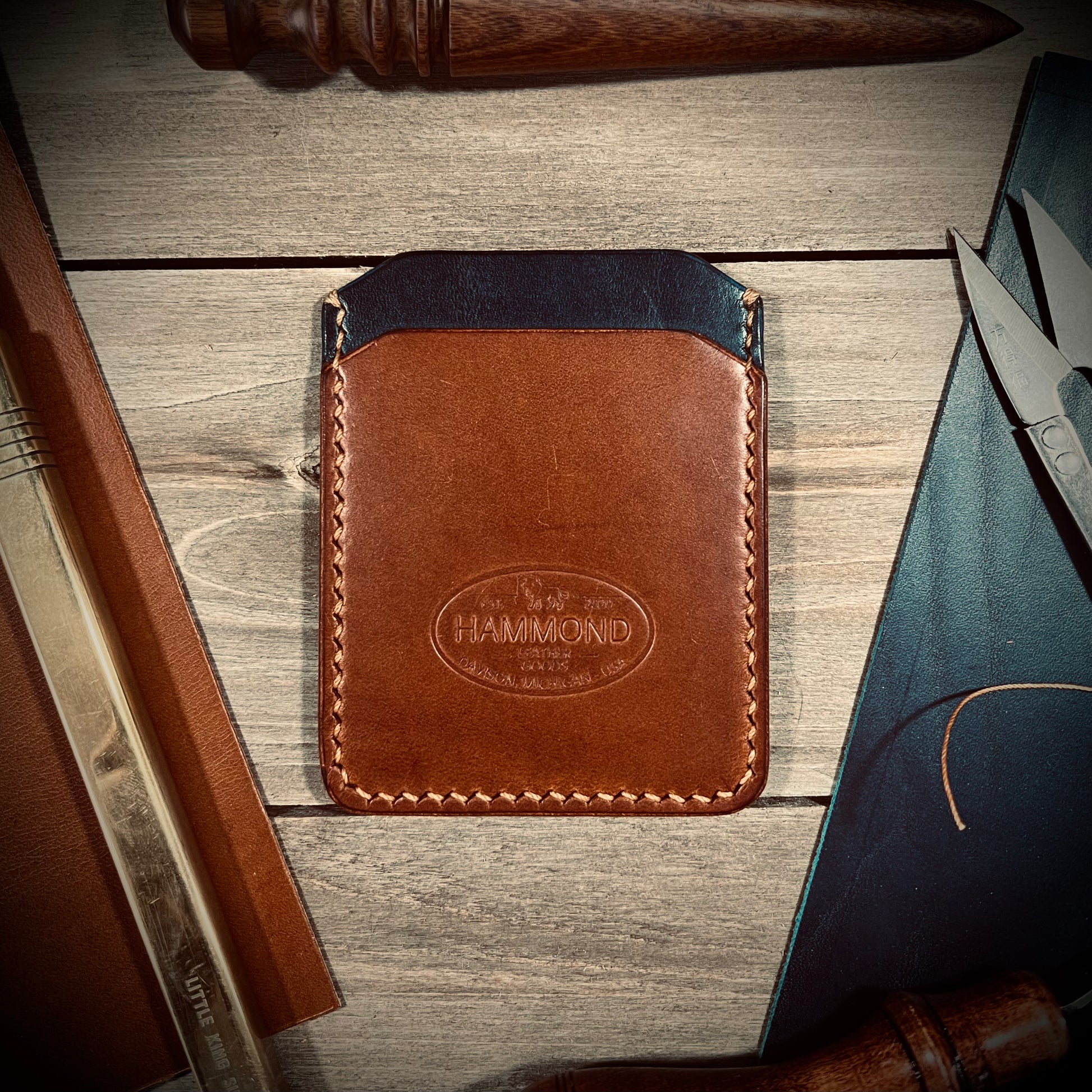 - Navy and Chestnut brown Buttero Italian Leather, paid with Cognac thread.